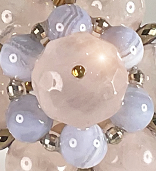Additional ring of stones within the gemstone cluster: Rose Quartz, Hematite.